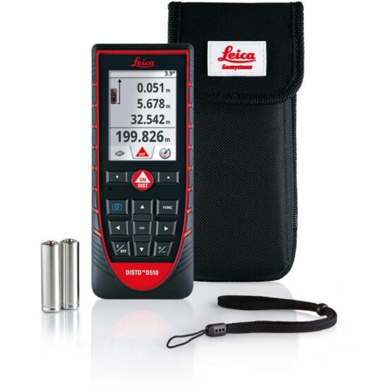 The Leica DISTO™ D510 is an easy to use laser distance meter with an intuitive interface and 200m range. The Pointfinder with 4x zoomallows for accurate measuring where there is no reflective target which can occur when working outside in bright conditions. The 360° tilt sensor can measure both angles and distances and can be used in conjunction with the Pointfinder to provide indirect measurements.